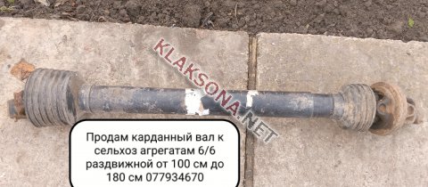 Продам карданный вал к сельхоз агрегатам 6/6 раздвижной от 100 см до 180 см